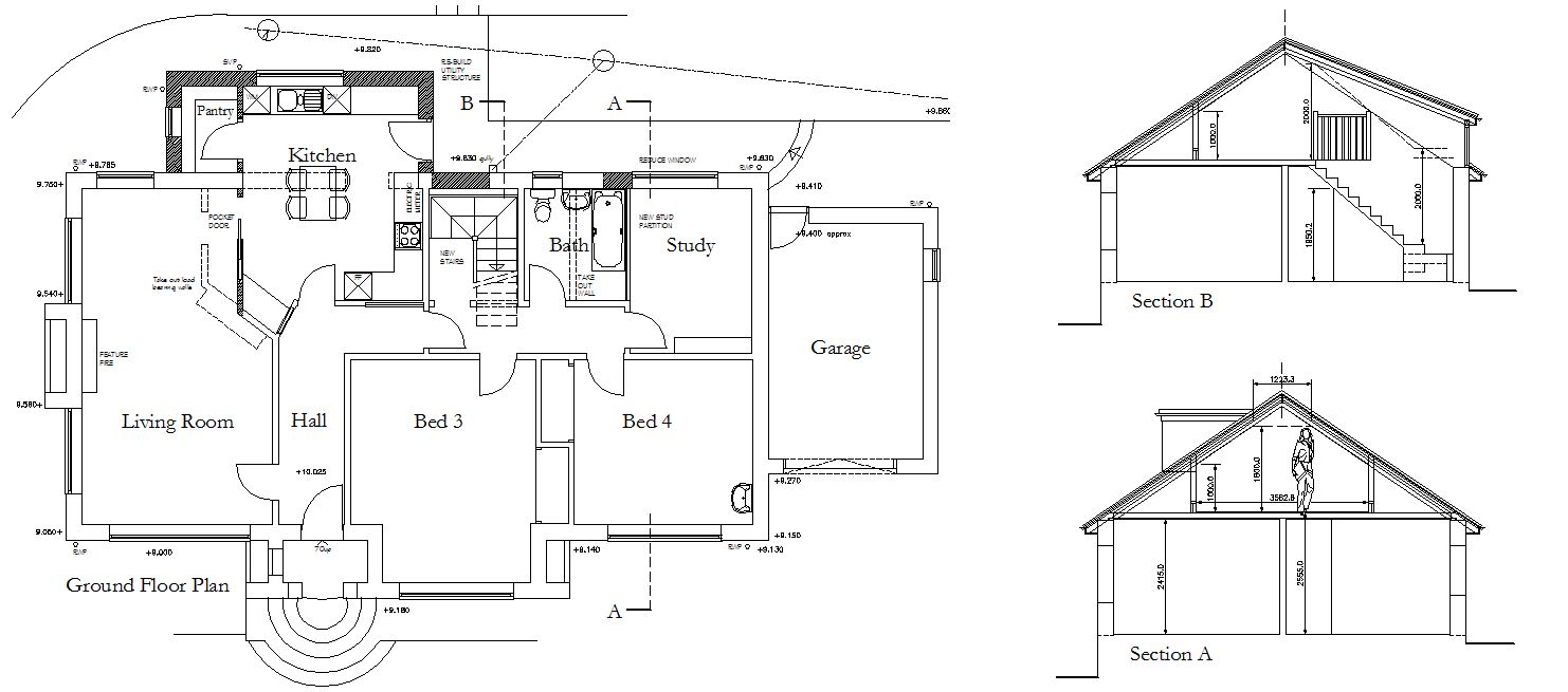 I carried out a full measured survey and drew up the existing plans and elevations for this bungalow.