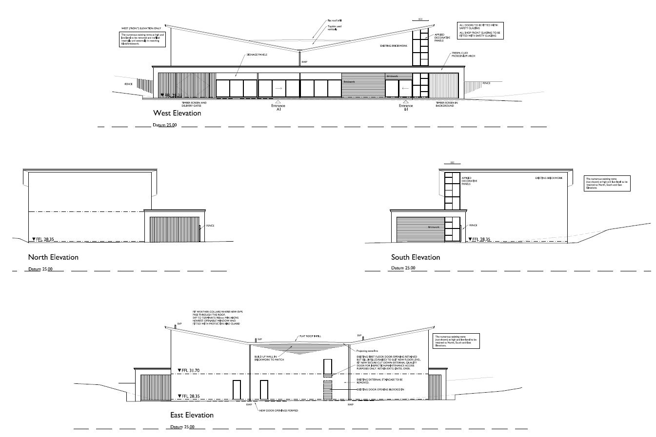 The works are for the conversion of a former squash club into two small commercial units – mini superstores. Most of the existing building is being retained and a new replacement single storey front extension built with a Proscenium Arch formed to enclose the circulation and storage spaces. A new first floor is being installed for provision of flats over in the future. The Contractor is to construct the building then the store will be fitted out by the Tennant – in this case The Co-operative.