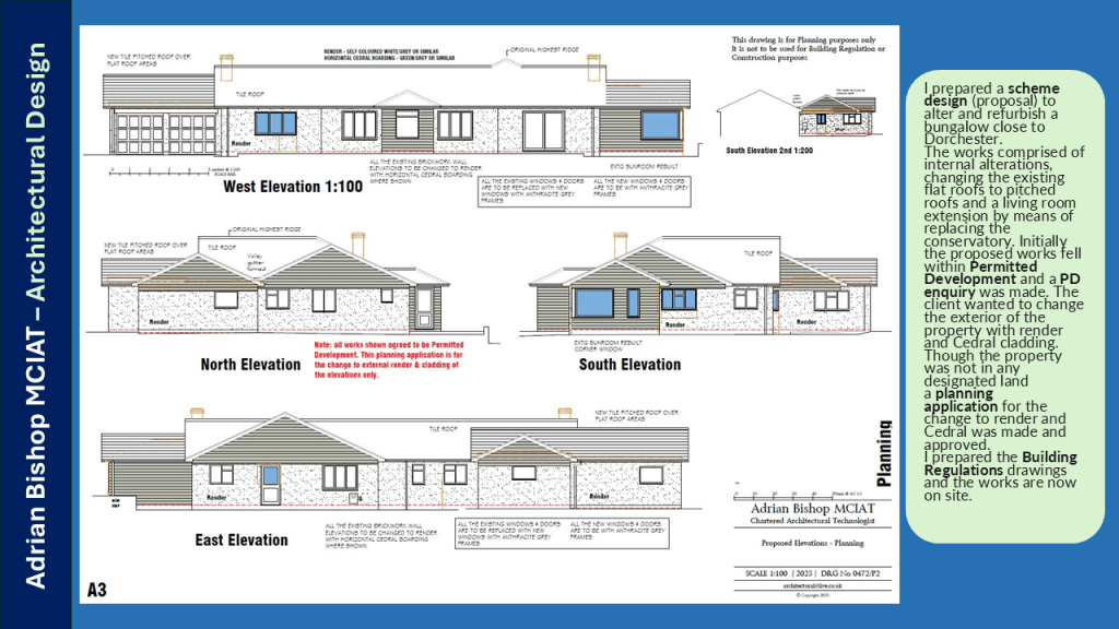 I prepared a scheme design (proposal) to alter and refurbish a bungalow close to Dorchester.